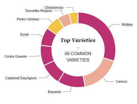 - Bonarda: Đây là một giống nho hiếm trên thế giới nhưng lại phát triển mạnh ở Argentina, mang đến giá trị tuyệt vời khi làm rượu đơn giống. Bonarda tương tự Malbec với hương trái cây đỏ và đen mọng nước, nhưng nhẹ nhàng hơn một chút.