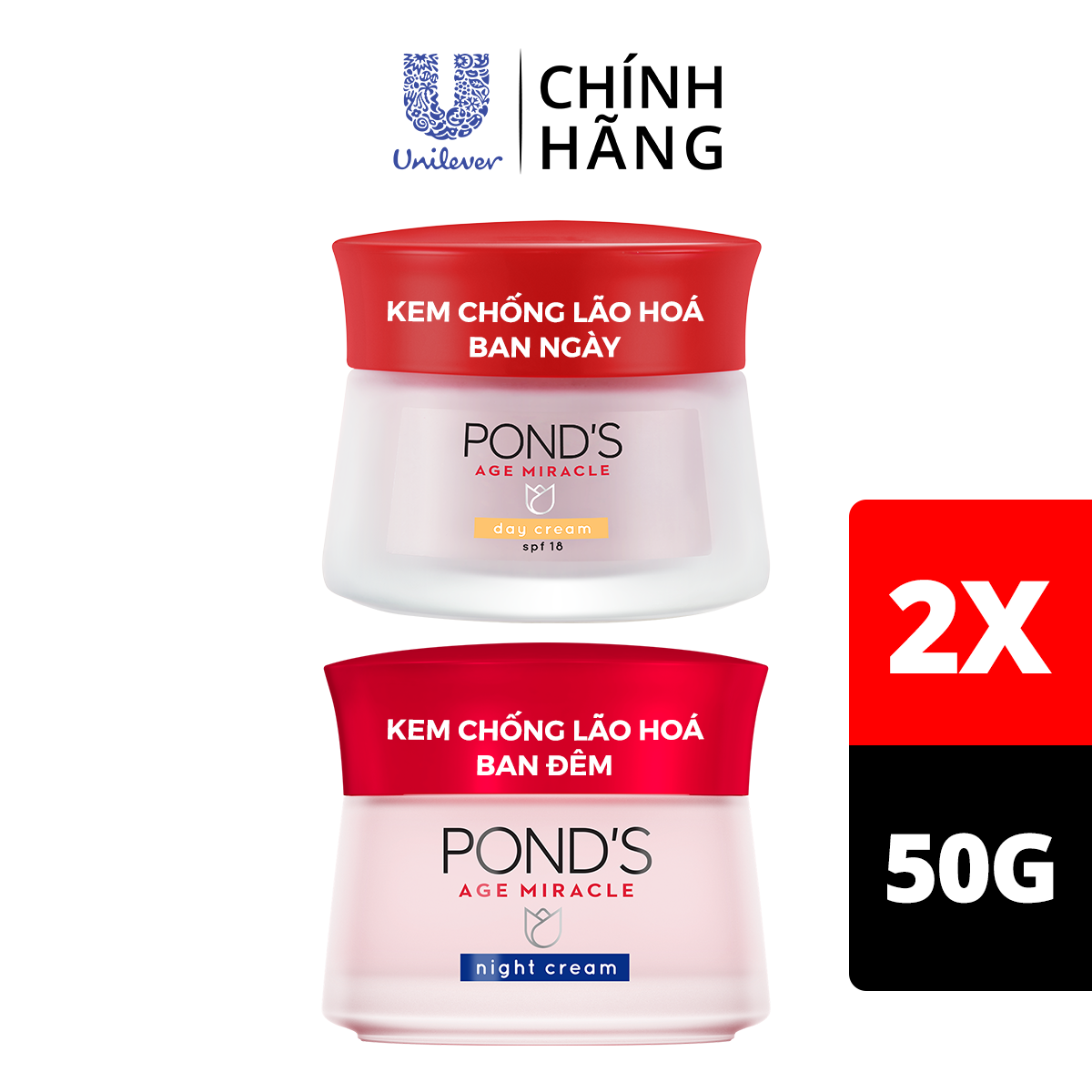 Gồm 2 loạiKem chống lão hóa và Dưỡng Da Pond's Age Miracle Day Cream SPF 18 PA++ 50g (Dành cho ban ngày)Kem chống lão hóa và Dưỡng Da Pond's Age Miracle Night Cream 50g (Dành cho ban đêm)