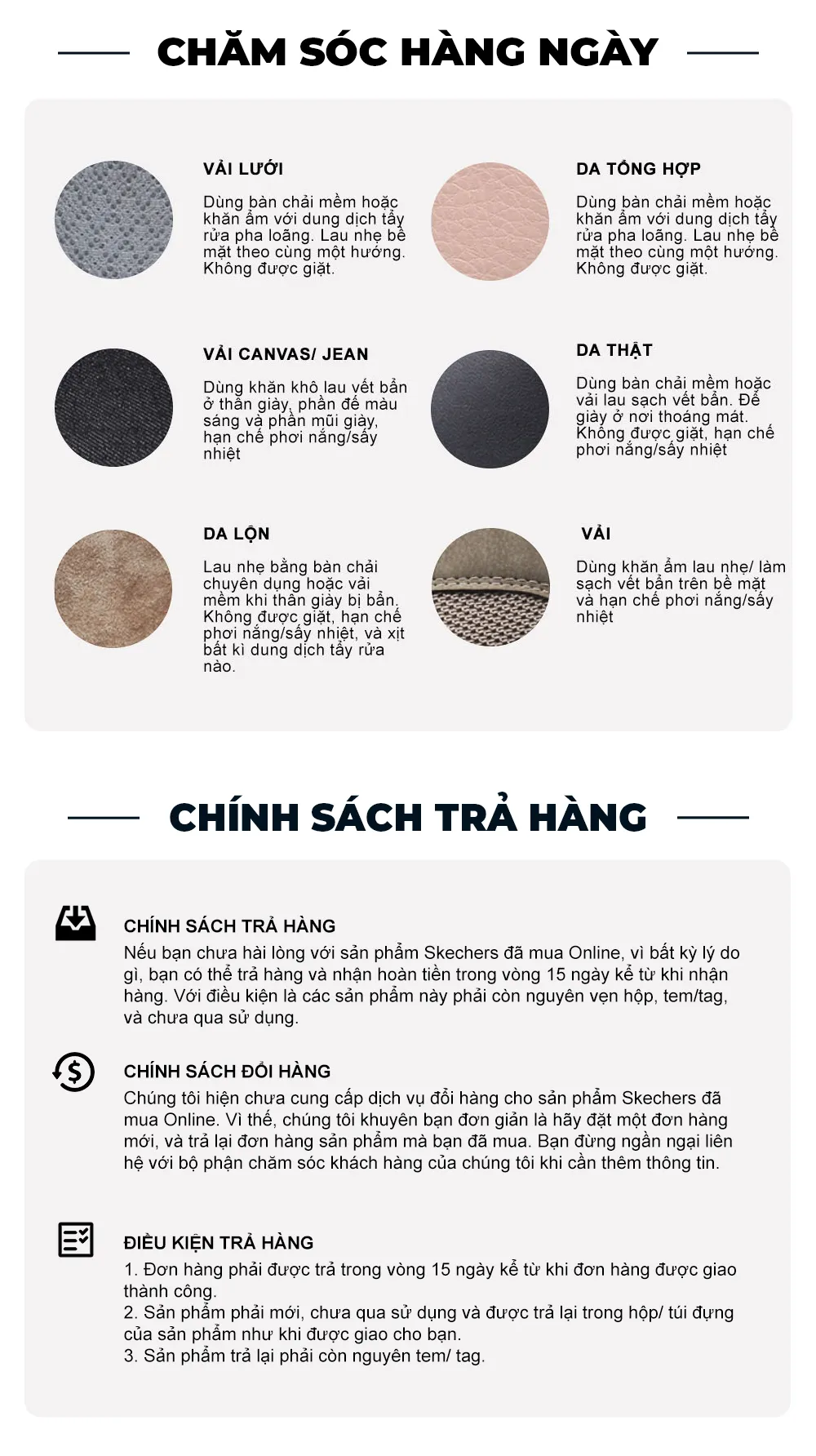 8. Chi tiết logo Skechers®: Kết hợp giữa sự sang trọng và thể thao, chi tiết logo Skechers® làm tăng thêm phong cách cho sản phẩm.