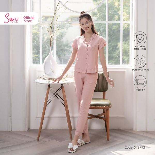 Bộ Đồ Mặc Nhà Nữ Pijamas Linen SUNFLY Áo Cộc Tay