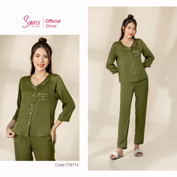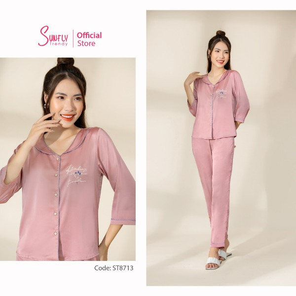 Bạn đang tìm kiếm bộ đồ mặc nhà nữ pijamas SUNFLY lụa áo tay lỡ, quần dài? Hãy cùng tham khảo thông tin chi tiết về sản phẩm này từ thương hiệu Sunfly: