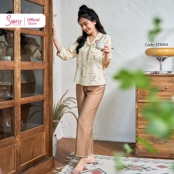 Bộ Đồ Mặc Nhà Nữ Pijamas Linen Sunfly Áo Cộc