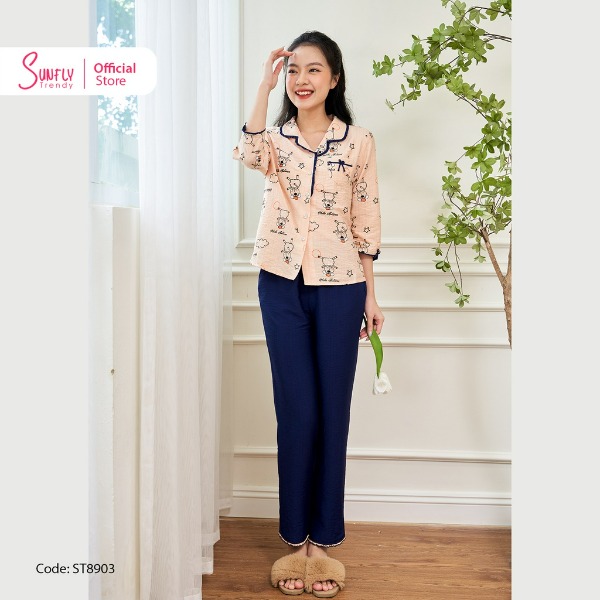 Bộ Đồ Mặc Nhà Pyjamas Linen SUNFLY Áo Tay Dài Quần Dài