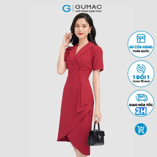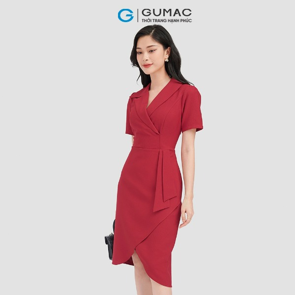 Đầm công sở nữ cổ U xếp eo thời trang GUMAC dáng ôm