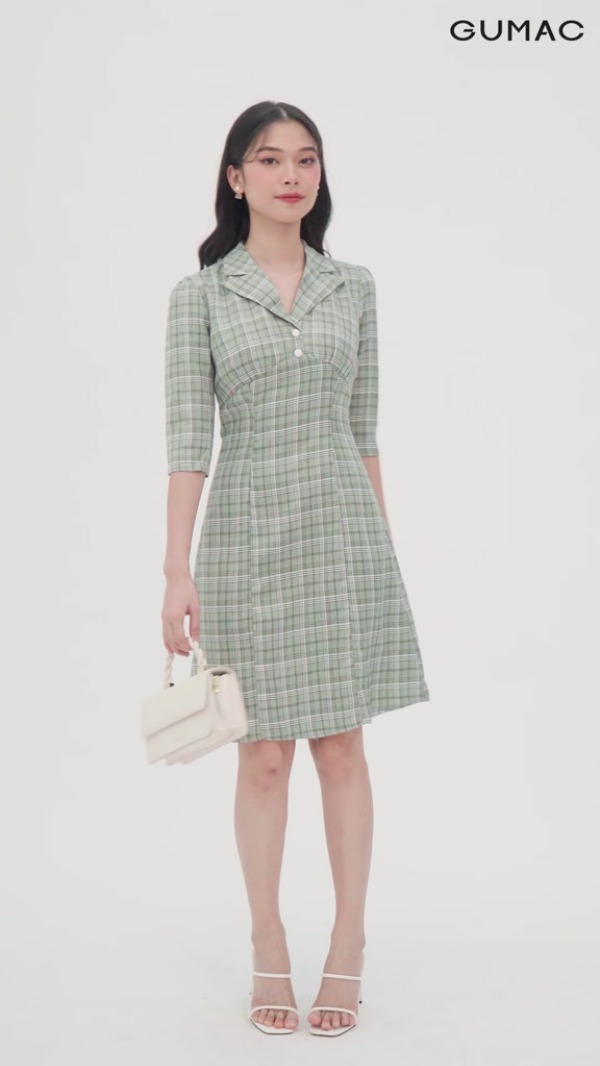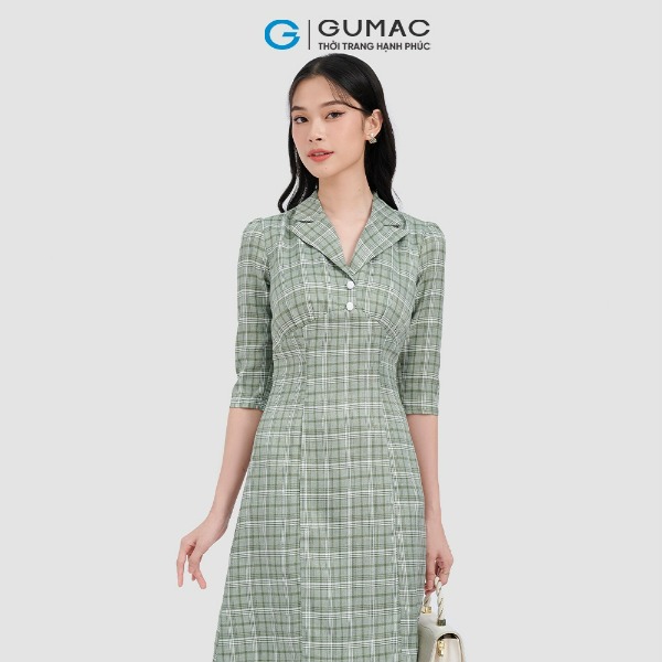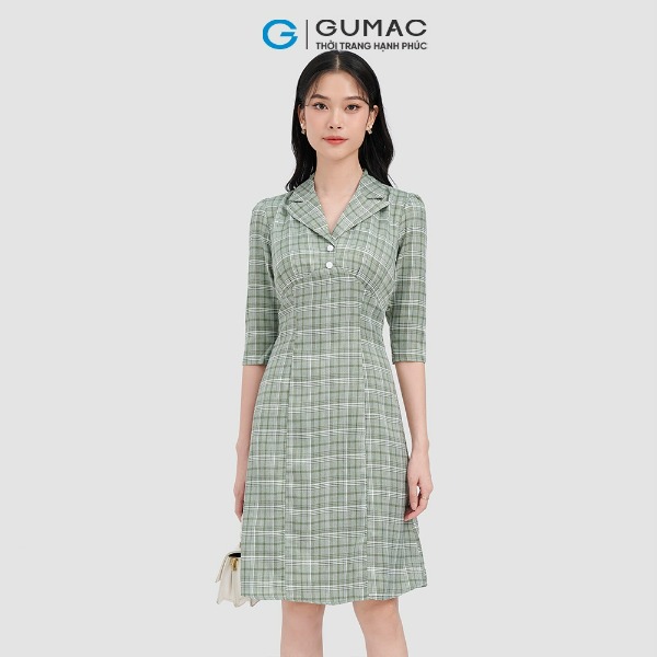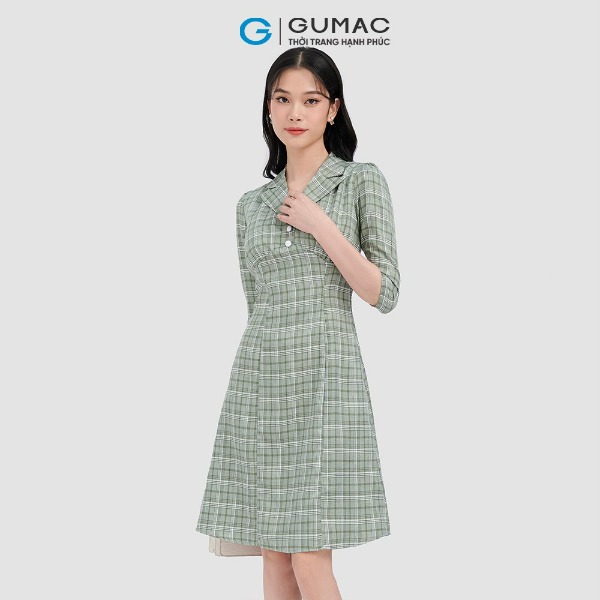Đầm caro phối sơ mi thời trang GUMAC