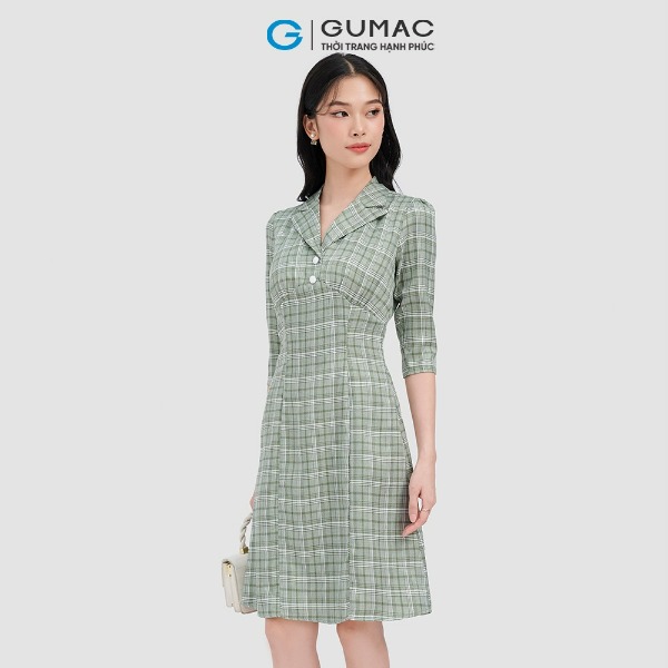 Đầm caro cổ bèo GUMAC