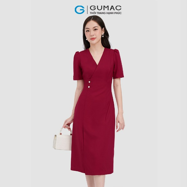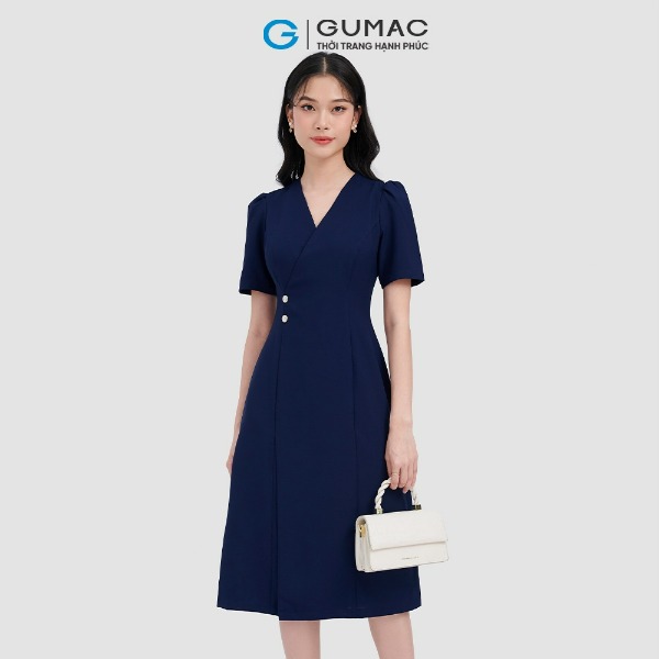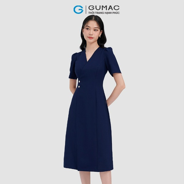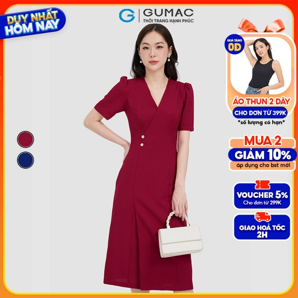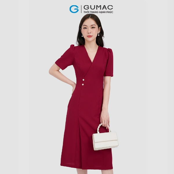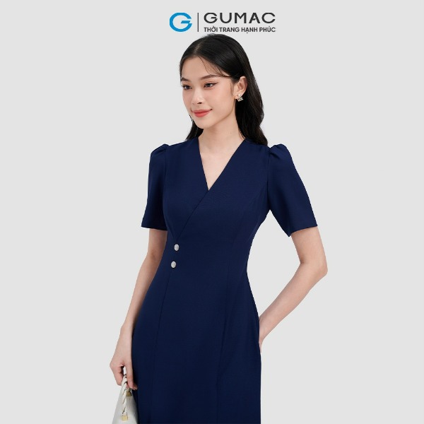 Đầm cổ xẻ phối nút thời trang GUMAC