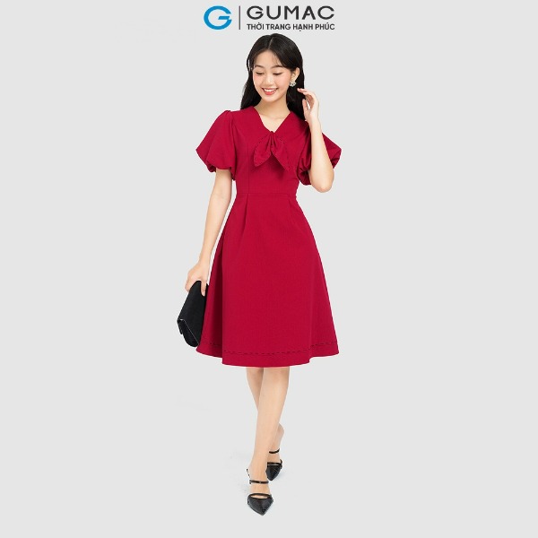 Sử dụng hai gam màu đỏ và xanh đen nịnh da, chiếc đầm này đem lại cảm giác thanh lịch và nổi bật cho người mặc. Dù đi chơi hay đi tiệc, bạn sẽ luôn tỏa sáng muôn nơi. Nếu bạn đang phân vân không biết mặc gì trong ngày hôm nay, chiếc đầm tay bồng Linen của GUMAC chính là lựa chọn hoàn hảo.