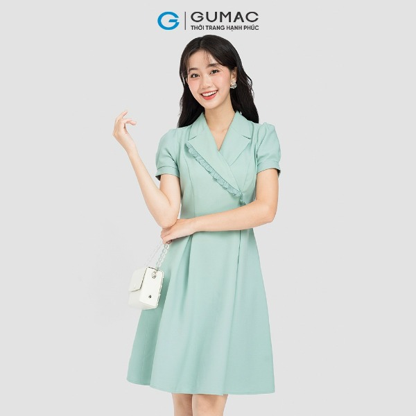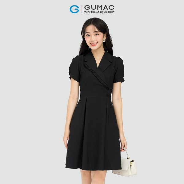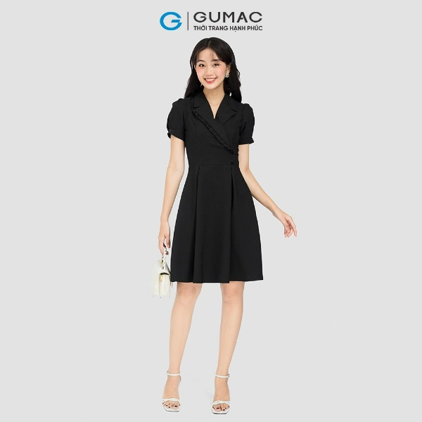 Đầm nữ thời trang GUMAC màu đen dáng chữ A phối cổ vest