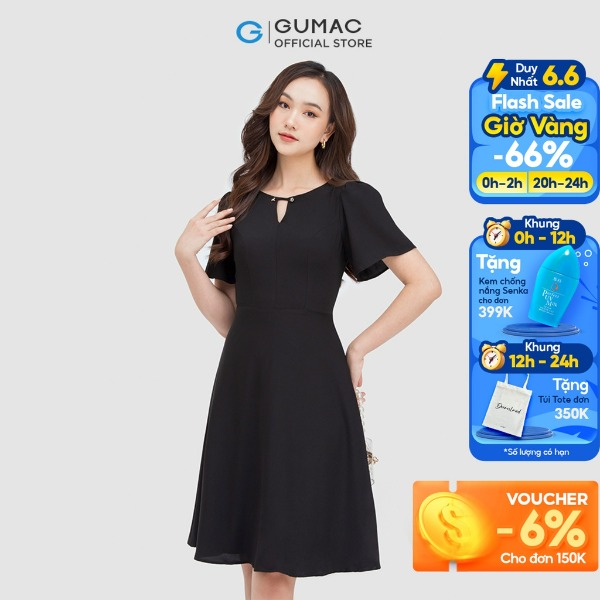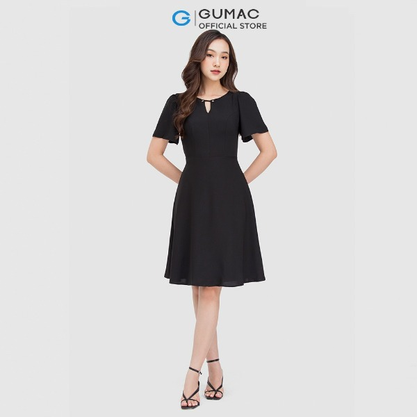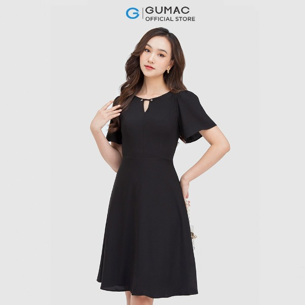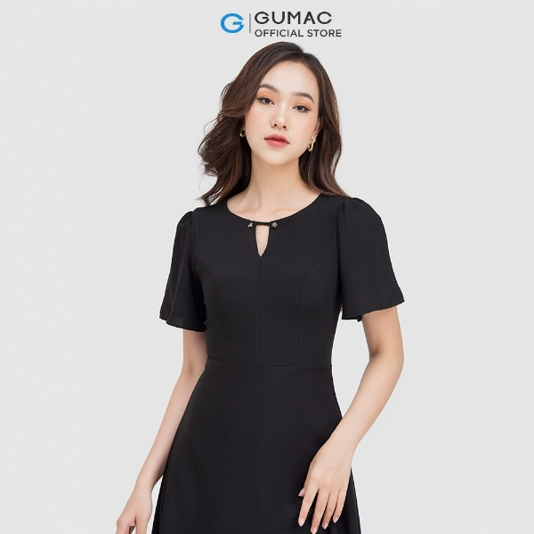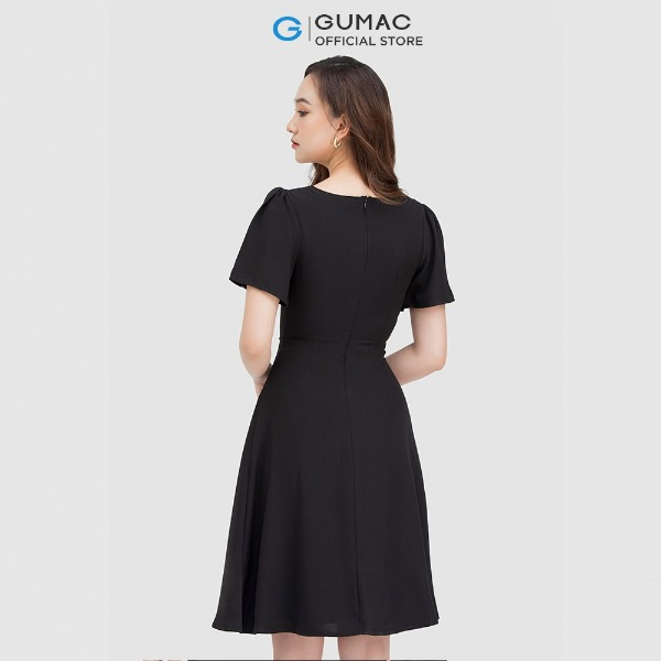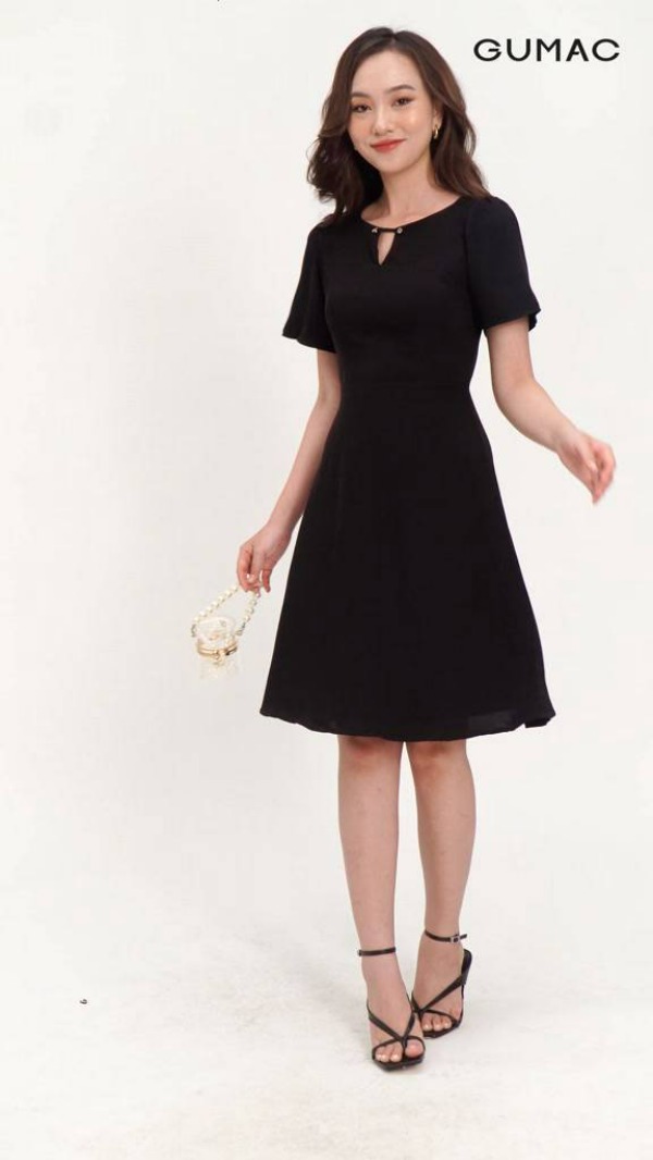 Đầm nữ thời trang GUMAC màu đen dáng chữ A phối cổ vest