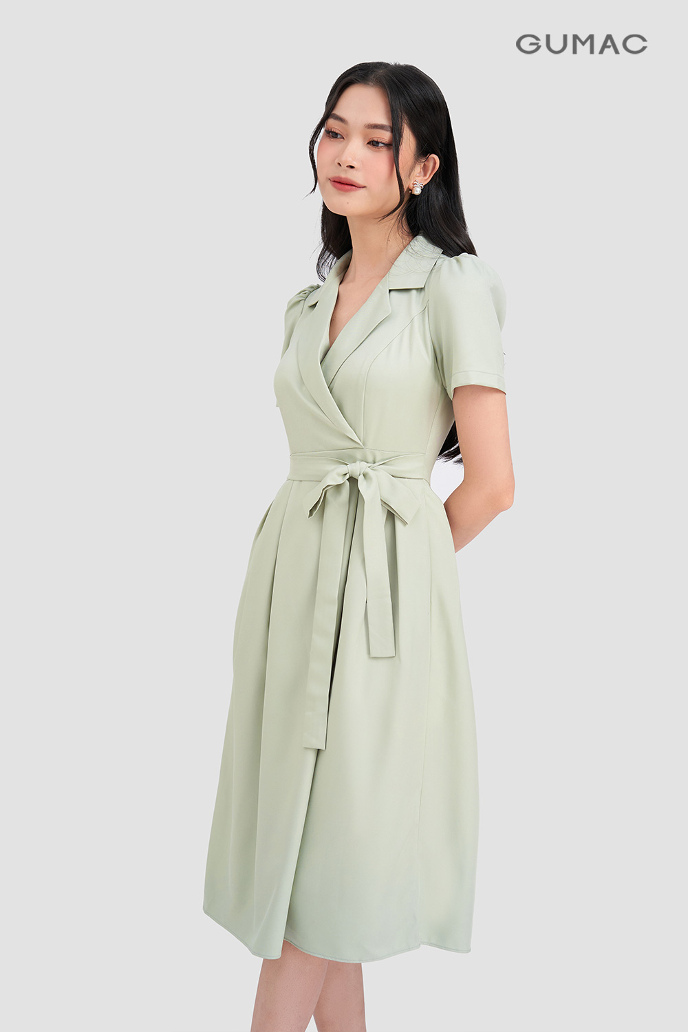 Đầm công sở nữ cổ U xếp eo thời trang GUMAC dáng ôm