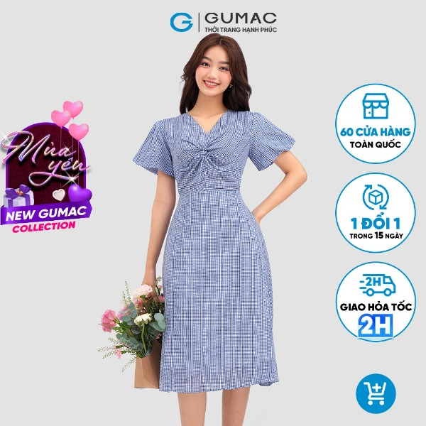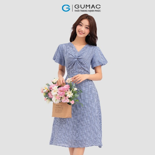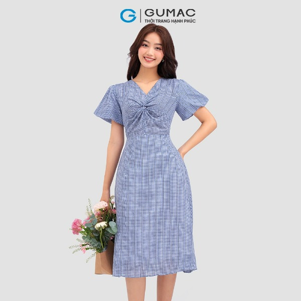Đầm cổ nơ phối chỉ nữ GUMAC form chữ A nhiều màu