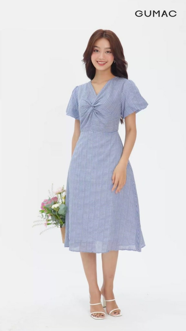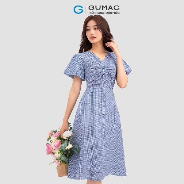 Đầm cổ xẻ phối nút thời trang GUMAC