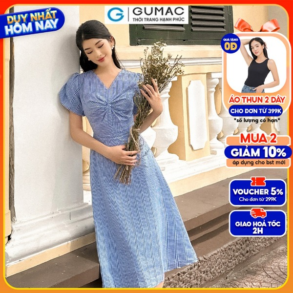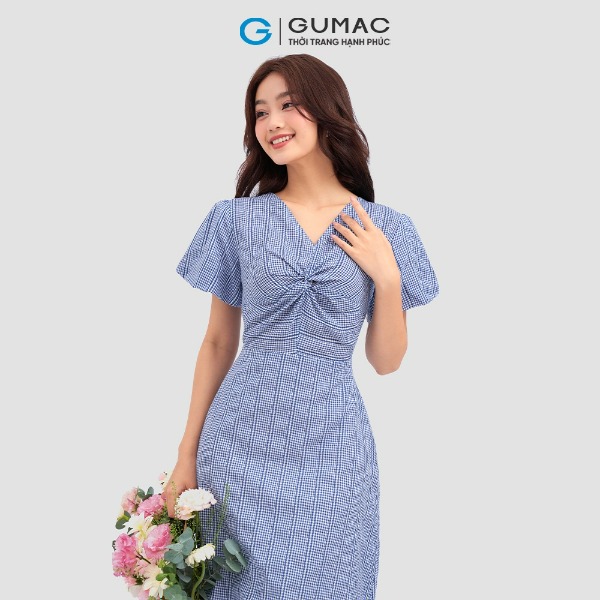 Đầm ôm body nữ sọc caro GUMAC phối lụa thời trang