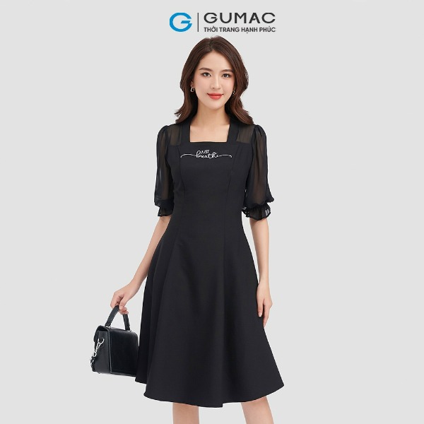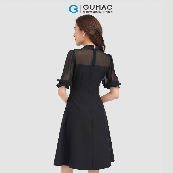 Đầm nữ thời trang GUMAC màu đen dáng chữ A phối cổ vest