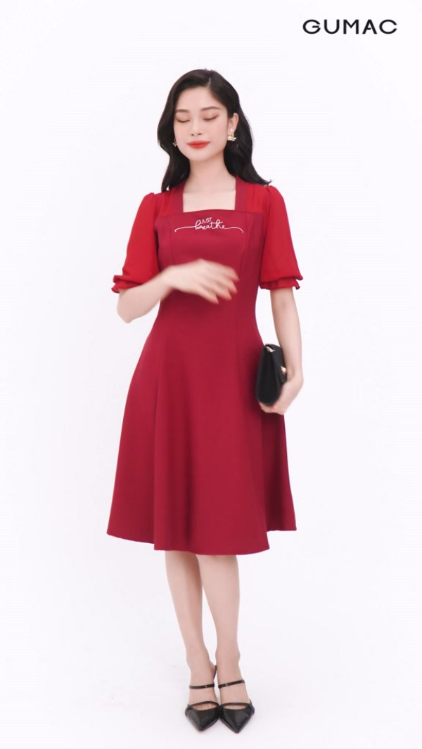 Đầm cổ xẻ phối nút thời trang GUMAC