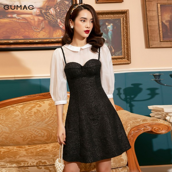 Đầm nữ thời trang GUMAC màu đen dáng chữ A phối cổ vest