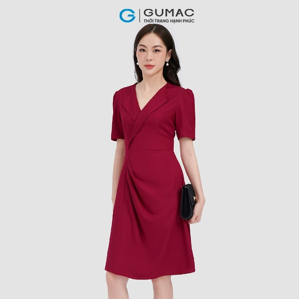 Đầm công sở nữ cổ U xếp eo thời trang GUMAC dáng ôm