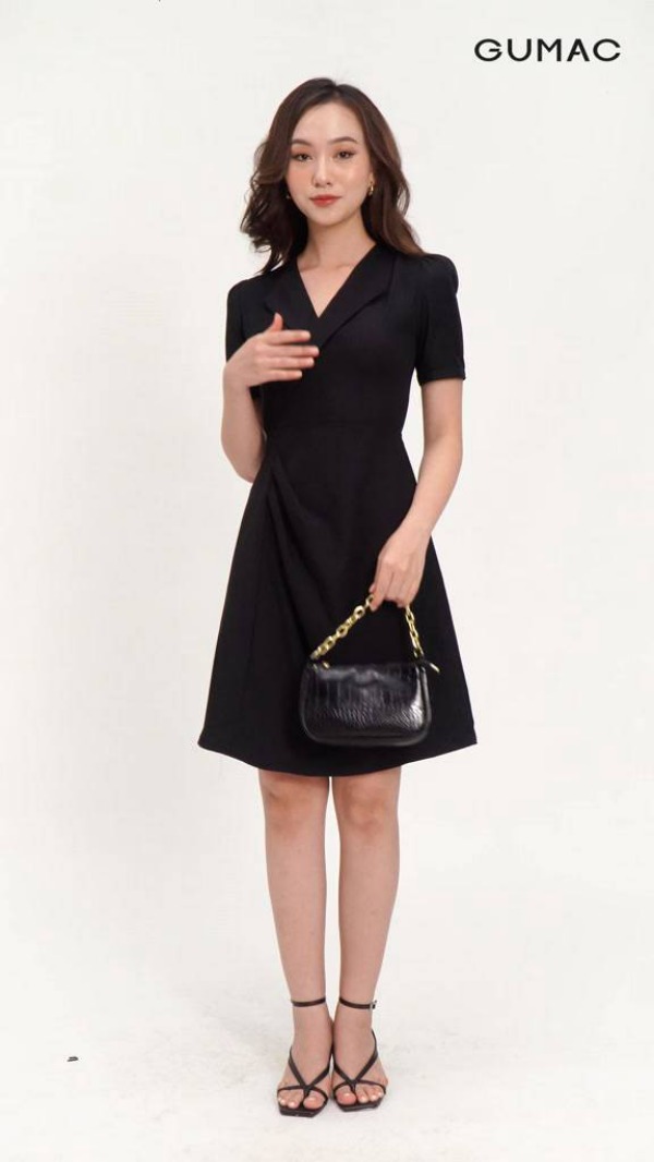 Đầm cổ vest phối bèo thời trang GUMAC