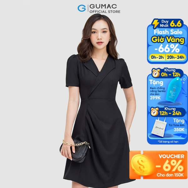 Đầm cổ xẻ phối nút thời trang GUMAC