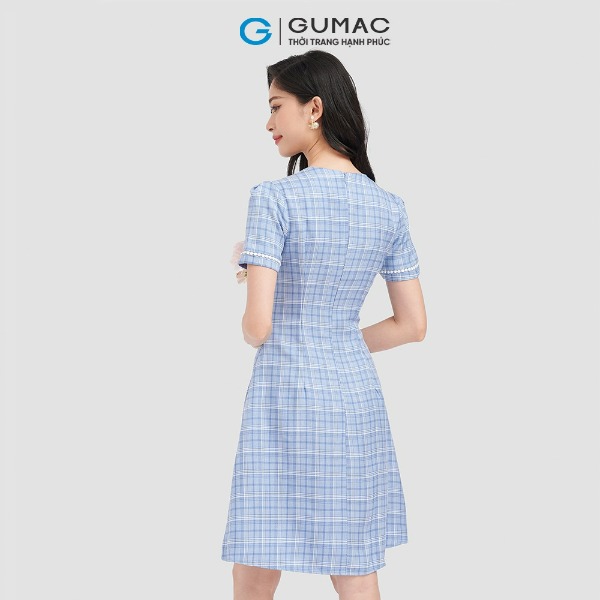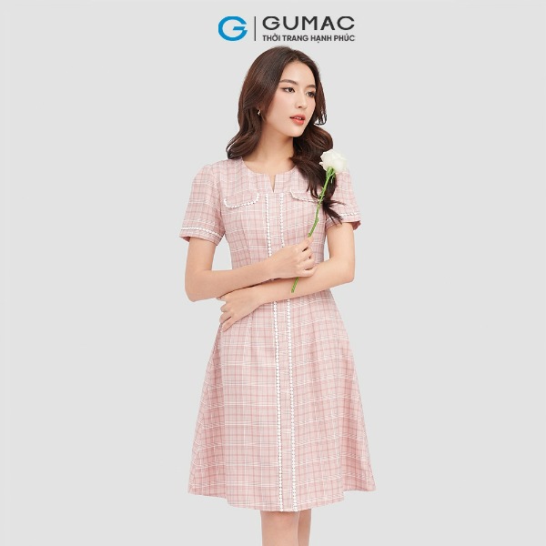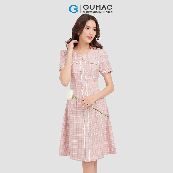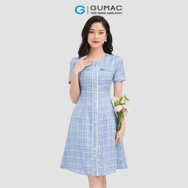 Đầm cổ nơ phối chỉ nữ GUMAC form chữ A nhiều màu