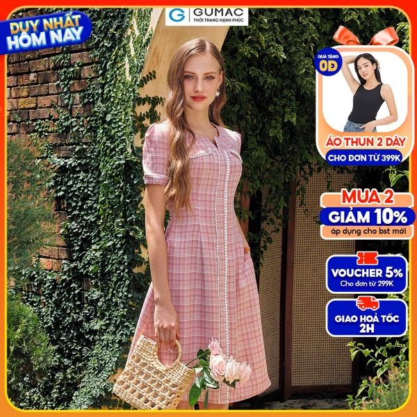 Đầm ôm body nữ sọc caro GUMAC phối lụa thời trang