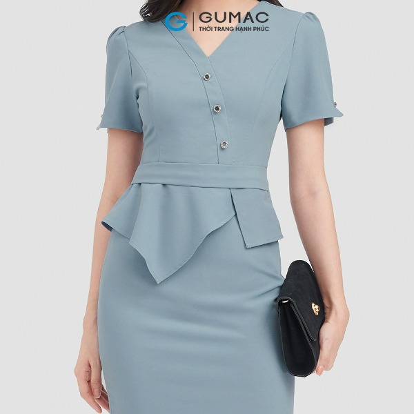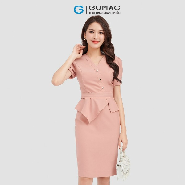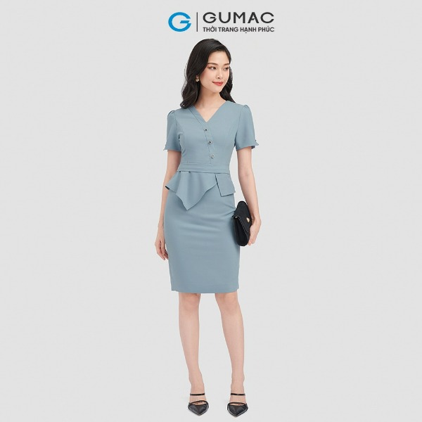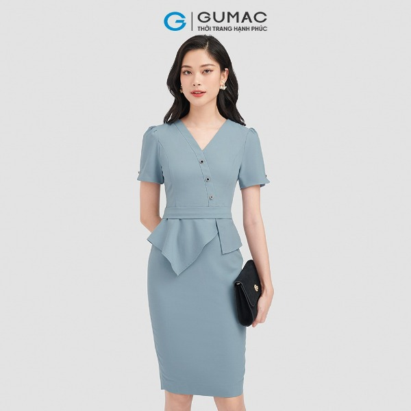 Đầm công sở nữ cổ U xếp eo thời trang GUMAC dáng ôm