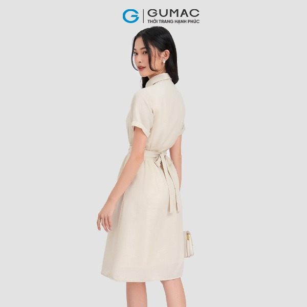Đầm công sở nữ cổ U xếp eo thời trang GUMAC dáng ôm