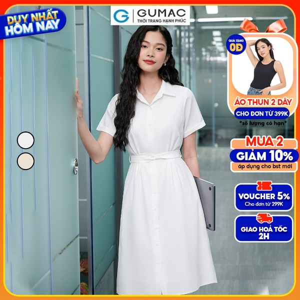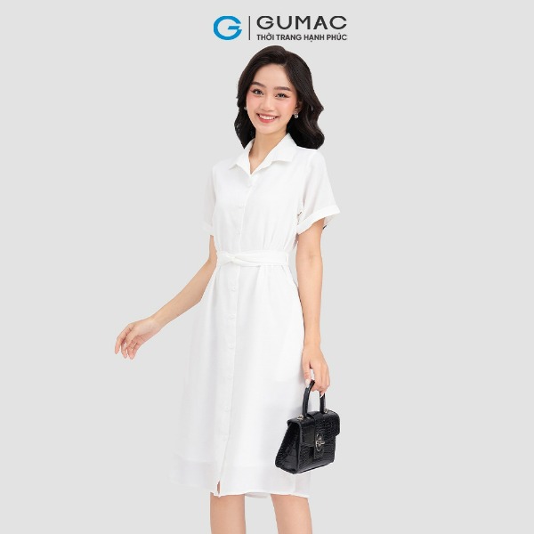 Đầm cổ nơ phối chỉ nữ GUMAC form chữ A nhiều màu